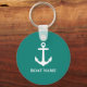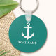 Your boat name or other desired text with a classic anchor on a nautical style key chain.