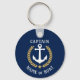 Your Boat Name Captain Anchor Laurel Navy Blue Key Ring