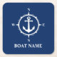 Your Boat Name Compass Anchor Blue Square Paper Coaster