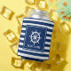 Your Boat Name Ships Wheel Helm Navy Striped Can Cooler
