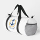 A nautical themed travel or gym duffel bag with your personalised name or boat name. This regal design features a boat anchor in rich blue highlighted with gold coloured laurel leaves and a gold star. The bag colour is a white or you can easily edit the design to any desired colour. with 2 sizes to choose from, this duffle bag makes a great gift.