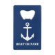 Your Personalised Name or Boat Name with a Custom Nautical Anchor in White on a Stylish Navy Blue, Bar Key Bottle Opener.