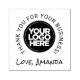 Easily personalise this wooden rubber stamp just adding your logo, photo, image or clipart. Write your custom circle text: your corporate slogan, website, etsy shop address, thank you messages, couple names, invitations. Add your signature with this warm handwritten modern font, or choose between thousands of fonts and styles: calligraphic, serif, sans serif, distressed, decorative. Perfect for small business promotional stationery, office, scrapbooking, party decorations, personalised gifts, etsy shops. No minimum order.