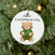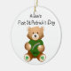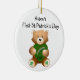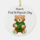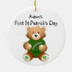 Personalise Your Child's Name First St.Patrick's Day Ornament 2012, with a Teddy Bear holding a big green heart, and shamrocks on his feet. All text is customisable.