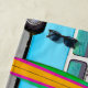 Your Company Logo Beach Scene Sea Blue Vintage Van & Surfboard Beach Towel - Customise this tropical beach scene design, featuring a bright blue vintage van and colourful surfboard near palm trees and on a white sand beach with turquoise blue water, with your own business logo. This is perfect as a client gift, customer gift, real estate gift, corporate gift, or to use as a door prize or promotional item. Design and photographs of the beach and palm trees by T.K. Goforth and signed by the artist, all rights reserved.