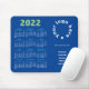 This mouse pad features the 2022 calendar (by default, dark and light blues, white with green accent colour). All colours on this magnet are customisable (background, year, months, days of the week, and dates).