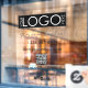 A black business logo branding window decal and window cling featuring your business logo, slogan or tagline, phone number, website, custom QR Code and customised social media icons . A personalised shop window cling perfect for shop windows and storefronts. Perfect for a business shop owner who would like decorate their window their business logo and branding.