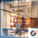 A black business name branding window decal and window cling featuring your business name, slogan or tagline, phone number, website, custom QR Code and customised social media icons . A personalised shop window cling perfect for shop windows and storefronts. Perfect for a business shop owner who would like decorate their window their business name and branding.
