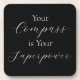 Enjoy the inspirational phrase "Your Compass is Your Superpower" while protecting your tabletops. Black background with white lettering.