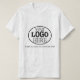 This custom t-shirt features a sample company or business logo placed in the centre over a white background. A sample slogan or additional text is printed below. You can personalise the shirt to include your own custom logo or image and text of your choice.