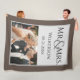 This blanket features a brown coloured background border. A sample wedding photograph is featured in the bottom portion which you can personalise to include your own custom photo or image. A sample name and personalised message is printed above. It is a perfect wedding gift for a newlywed couple. You can add their "Mr." and "Mrs." titles with their last name and wedding date.