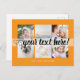 Script with Heart Your custom text 6 photos collage orange universal Postcard. Personalised 6 family collage photos Universal Greetings Postcards featuring a stylish photo collage with 6 customised images, your greetings message in elegant handwritten script font, your name, date, year, message on the back in a modern and simple sans serif font.