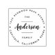 This stamp is ideal for any family looking for a personal touch for their mailing. This design features your family name in a hand-lettered script with "The" and "Family" above and below. Your return address is placed in a circle around your family name. Click the "personalise" button and type your own name and return address into the text boxes that appear.