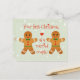 NewParkLane - Cute Christmas Postcard for newlyweds, with 'Your first Christmas as a married couple' quote, to celebrate their first Christmas as a mr and mrs, featuring two a cute little gingerbread men, and a heart between them, against a sage green snowy background. The texts are in a fun handwritten font in red. All text styles, colors, and sizes can be modified to fit your needs.
