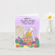 If cats could celebrate us, their taste in party food might not appeal to us as much as to them. A cute white cat in an apron finishes decorating a special birthday cake made mostly of canned fish. In this cute design from cat at to cat person, the secret recipe is revealed. You can add the recipient’s name and the cat’s name as well to make this a really memorable greeting.