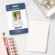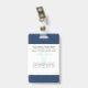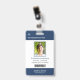 Your Health Care Company personalised Logo Photo Clip Name Badge for doctor, surgeon, nurse, dentist, employee, volunteer and any medical profession with caduceus medicine symbol on the back side. With custom Photo, Logo, Bar Code, Name, Department and additional informations. A basic and clear design in navy blue and white, with sans-serif fonts. Use this modern name tag badges for all of your staff for keeping any important informations with them in a simple way. Photo by Humberto Chavez.
