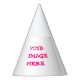 Place your custom image (picture or graphics) onto this party hat template. This custom party hat design can be personalised with a name or customised with your own unique message. Custom party hats are great for birthdays, graduations, or other fun gatherings.