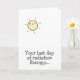 NewParkLane - Add some good vibes with this cute get well card for someone who is fighting cancer and needs a bit of sunshine The card has a cute little sun cartoon and text: 'Your last day of radiation therapy!' in a fun script typography. The inside message says 'Hang in there', but can easily be changed in any other message for a personalised design.