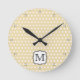 Your Letter. Custom Monogram. Beige Polka Dot. Round Clock