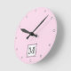 Your Letter. Custom Monogram. Pink Black White. Round Clock