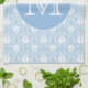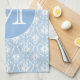 Your Letter, Monogram. Pale Blue Damask Pattern. Tea Towel