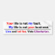 Your life is not my fault. My life is not your business. Live and let live. Vote Libertarian.