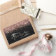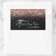 Add your logo to a modern faux sparkly rose gold glitter digital art graphic over a solid color black background on these rectangular stickers.