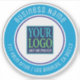 Personalise this white and blue circle sticker with your Company Logo, Business Name and address or any text you want. Click “Edit” to change colours and type styles.