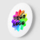 If your logo is not sized properly go into "personalise this" then "edit using design tool" then click on the logo and hold down the shift key while you resize it. Please feel free to contact me and I'll do my best to help you. This clock is a perfect addition to your office or store featuring your logo!