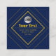 basic plain but stylish appearancemodern simplistic minimalistic fontcool simple self promotional designadd slogan or social mediavintage retro looking business namesimple yet creative bold lookingfancy art deco style squaresupload my own logo heredark navy blue and goldgeometric square framed shapes