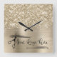 Your Logo Glittery Pale Gold Glam Square Wall Clock