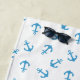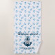 Super cute tropical summer beach towel with blue anchor pattern. The perfect gift for guests, friends, or bridesmaids. The design is classic and customisable change the welcome text and add your boat name. Start customising your product now!