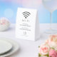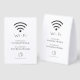 This minimalist Wi-Fi network and password table tent features a white background with a Wi-Fi icon and your logo. Perfect for offices, cafes, restaurants hotels, hair salons, airbnbs, lounges, break rooms, waiting rooms, or any other any other related spaces and facilities. Personalize it for your needs. You can find matching products at my store.