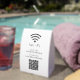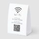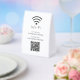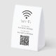 This minimalist Wi-Fi network and password table tent features a white background with your logo and qr code. Personalize it for your needs. You can find matching products at my store.