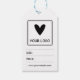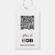 Minimalist white price tags for your handmade items where you can add your logo, size, price, website, QR code, and your social media handle in black fonts against a white background.