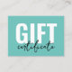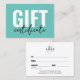 Your Logo Chic Minimal Business Gift Certificate. Add your logo to make it your own. A fun and simple gift certificate for corporate brands, small businesses, or individuals like makeup artists, estheticians, hair stylists, and so much more! Right now it is a turquoise or teal, black and white colouring, but you can switch out any of the colours to whatever you'd like to use! A mix of modern and script typography for a professional but chic look.