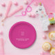 Your Logo Text Pink Solid Colour Round Personalise Paper Plate
