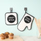 Custom oven mitt and pan holder for businesses and companies. Customise your company logo and text easily. Simple black and white.