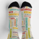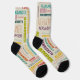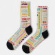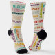 Create a very extremely personalised pair of socks. Your custom name appears all over these socks in a collage of different fonts and lettering styles. Lettering in red, yellow, orange, lime green, turquoise, pink and purple is set against a light tan or cream coloured background.
