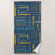Create a very extremely personalised beach towel. Your custom name appears all over this towel in a collage of different fonts and lettering styles. Lettering in teal, mint green, blue and yellow is set against a navy blue background.