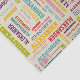 Create a very extremely personalised tissue paper. Your custom name appears all over this paper in a collage of different fonts and lettering styles. Lettering in teal, mint green, blue and yellow is set against a navy blue background.