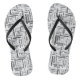 Create a very extremely personalised pair of flip flops. Your custom name appears all over the footbed of these sandals in a collage of different fonts and lettering styles. Black lettering is set against a white background.