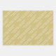 This is a cool design with your message pattern in an all-over print. This is a set of 3 coordinating sheets; two have your message with gold text printed in diagonal rows on a white background. The third sheet has reversed colours with white text on a gold background.