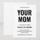 Give them a laugh before the party even starts with this hilariously snarky "Your Mom" joke birthday invitation. Designed with a modern, minimalist aesthetic, this invite features bold black typography on a clean white background, making the classic punchline the center of attention. This funny birthday invitation is perfect for preteens, teens, or anyone with a sarcastic sense of humor. This is an editable template that allows you to easily customize the name, age, date, and location to fit your specific celebration.