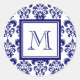 Your Monogram, Navy Blue Damask Pattern 2 Classic Round Sticker