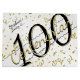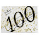 This is a "Centenarian," black and gold birthday design. The black typography number 100 is edged with gold; the “Centenarian” is printed diagonally on top of it. The background is a faded gold to white gradient, scalloped banner, and graphic confetti.