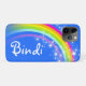 Help protect your child's iphone4 or 4S from knocks and kiddy accidents, with this pretty rainbow design girls barely iphone4 case. Personalise with your childs name up to 5 letters, perfect short names or nicknames. This example reads" Bindi" Exclusively designed and illustrated by Sarah Trett.