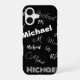 Your name and monogram custom pattern black iPhone 16 case