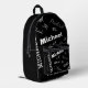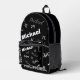 Your name and monogram custom pattern black printed backpack