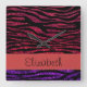 Your Name - Animal Print, Zebra, Glitter - Purple Square Wall Clock